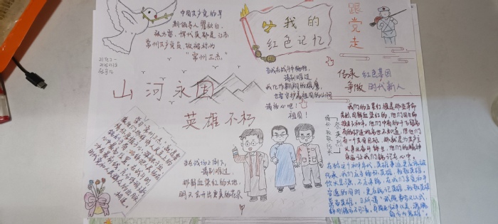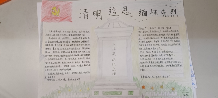 通过线上方式组织观看《国家记忆》四集电视纪录片《常州三杰》回顾革命先烈的英雄事迹,各班同学通过追忆往昔,感受他们坚定的革命意志和浓厚的家国情怀,充分表达了对革命先烈的缅怀之情;结合“三杰班”创建主题内容,开展了“清明云追思”网上祭英烈活动。同学们通过常州三杰纪念馆线上云祭扫,开展“线上云追思”、“线上云缅怀”等方式,用简单有力的文字表达对常州三杰的怀念与致敬;开展 “忆往昔峥嵘,做时代青年”主题征文及手抄报活动,抒写自己对革命烈士的感言寄语,深情缅怀革命先烈,深化爱国主义主题教育。