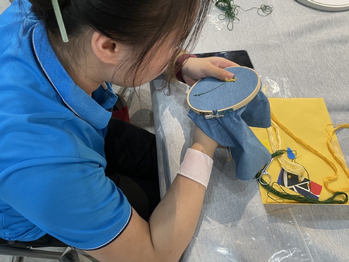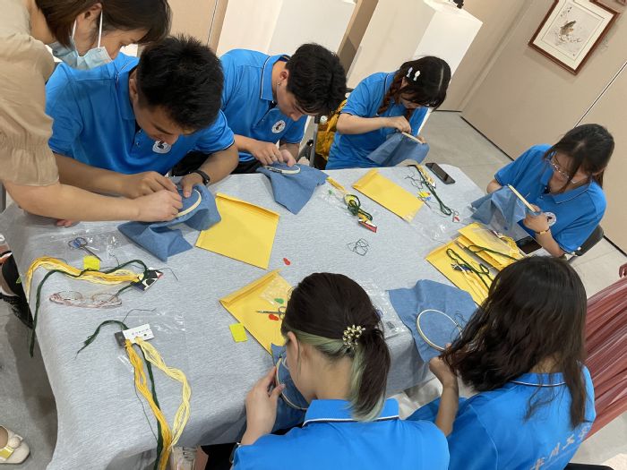 随后,团队成员们在乱针绣文化传承人吴澄带领下,来到第二站——乱针绣博物馆,一幅幅栩栩如生的艺术品陈列于此,飞鸟虫鱼、山水人物呼之欲出,让人分不清是绣还是画。在“绣娘”师傅们的指导下,团队成员还亲身体验了乱针绣最古朴的技法学习,体会到融绣理与画理为一体的刺绣艺术的“独一无二”。