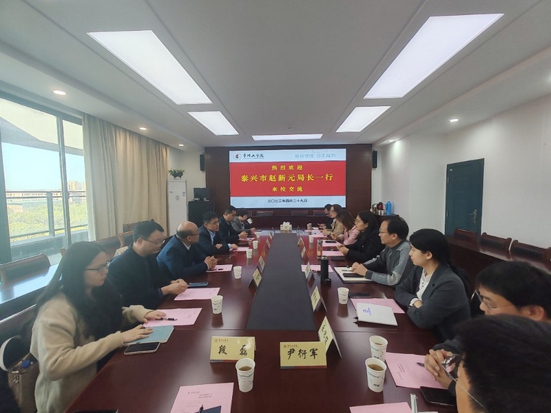 2024年3月29日下午,泰兴市经济开发区管委会副主任刘增富、经济和科技发展部主任周亚东,江苏常隆农化有限公司副总经理刘建军、润泰新材料股份有限公司研发总监卢晓松、江苏汤臣压克力有限公司行政总监杨菊华等一行来公司合作交流。公司党委常委、副董事长干方群,科技处副处长陈小卉,化工与材料公司党委书记储云峰、副书记陆孟、副经理魏雪姣及相关系主任和专业教师参加了交流座谈。