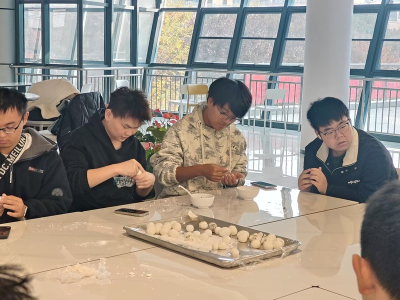 活动伊始,“巧手包汤圆”环节在食堂温馨开启。同学们兴致盎然,揉面、拌馅、捏合、搓圆,动作从生疏到熟练,现场洋溢着欢声笑语。当一碗碗圆润饱满的汤圆在氤氲热气中出锅,大家品尝着亲手制作的美味,感受着劳动带来的满足与集体凝聚的温情。